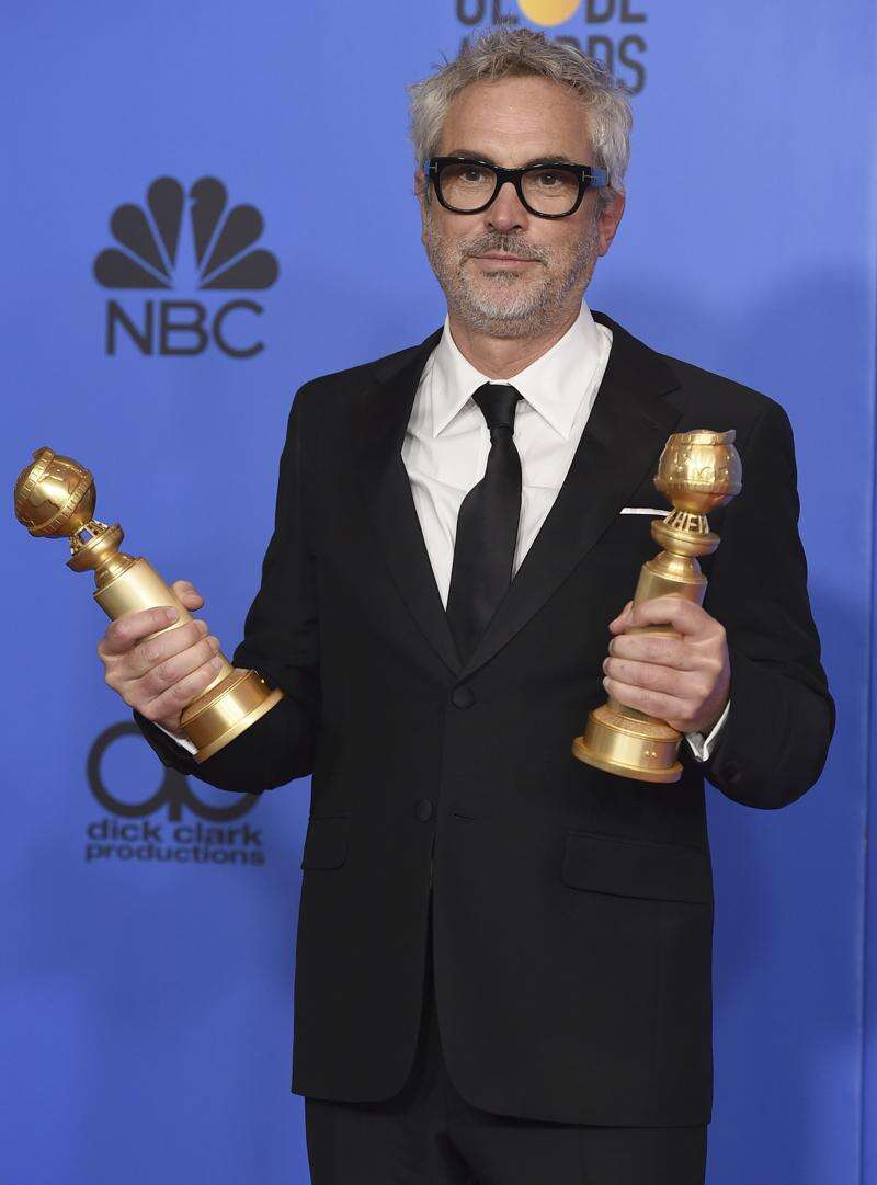 Alfonso Cuaron poses in the press room with the awards for best director, motion picture and best motion picture, foreign language for "Roma" at the 76th annual Golden Globe Awards at the Beverly Hilton Hotel on Sunday, Jan. 6, 2019, in Beverly Hills, Calif. (Photo by Jordan Strauss/Invision/AP)