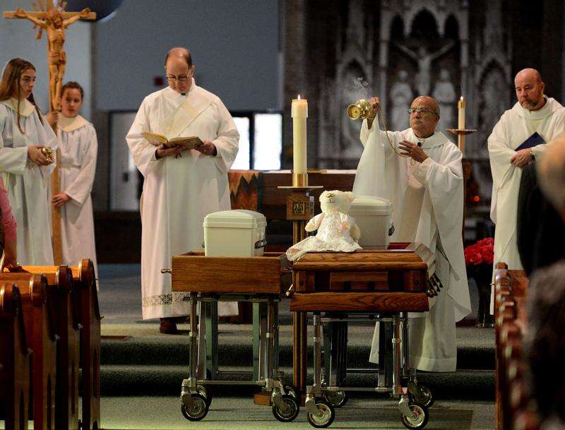 Abandoned babies Mariam Jane Uddin, left, and Ariyah Mikayla Hoover are eulogized during their funeral at St. Mary Church in Buffalo Grove. Bob Chwedyk/bchwedyk@dailyherald.com