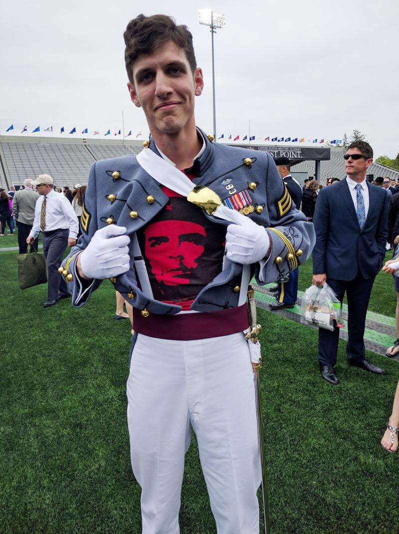 On Monday, the Army's 10th Mountain Division accepted the resignation of 2nd Lt. Rapone less than a year after he posted photos of himself at his 2016 graduation, posing in a Che Guevara shirt under his uniform, along with a fist salute to underline a message written in his cap: Communism will win.
