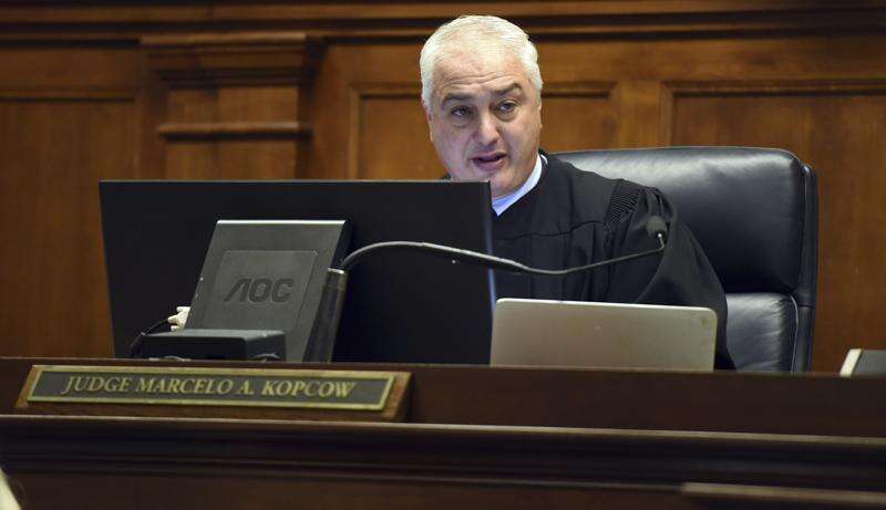Judge Marcelo A. Kopcow speaks to the attorneys during the bond hearing for Christopher Watts at the Weld County Courthouse Thursday, Aug. 16, 2018, in Greeley, Colo. Watts, of Colorado, whose wife and daughters disappeared this week was arrested on suspicion of killing them. (Joshua Polson/The Greeley Tribune via AP, Pool)