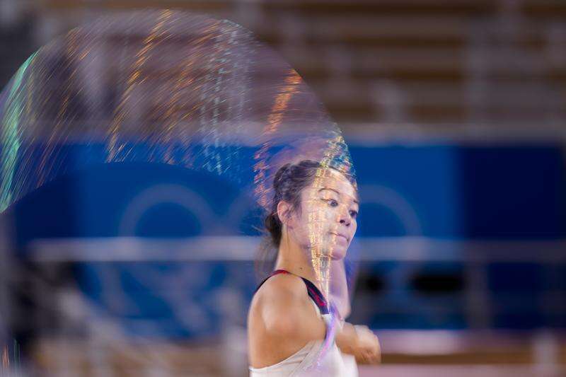 TOKYO (AP) - In the darkest days of the pandemic, Evita Griskenas was stuck practicing in her parents' Illinois basement, occasionally breaking lightbulbs as she tossed clubs and hoops through the air and cartwheeled to catch them.